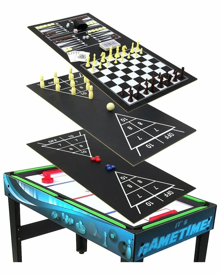 - This 10-in-1 multi-game table is the perfect indoor game center for friends and family. Keep everyone entertained for hours on end with a 10-in-1 game table. With multiple games to choose from, loved ones will always have a way to spend time together. This table is perfect for switching back and forth between sports so you can easily start a new sport once tired of the current one. This game table features ten classics: billiards, foosball, hockey, table tennis, shuffleboard, chess, checkers, cards, backgammon, and bowling. Plus, the comfy, easy-to-grip handles on the foosball table will make it easy for to score the winning goal, and it’s easy to keep track of the score with the manual scorer located on each side of the table. With everything it has to offer, this game table offers fun and action for the family.
