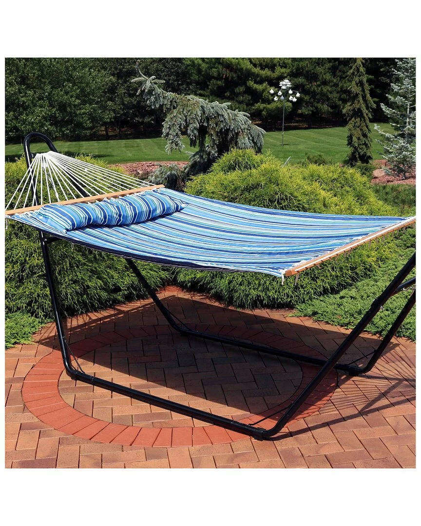 Cheapest ๐ Sunnydaze 2-Person Fabric Spreader Bar Hammock And Pillow Breakwater Stripe Home Hammocks & Swing Chairs โจ