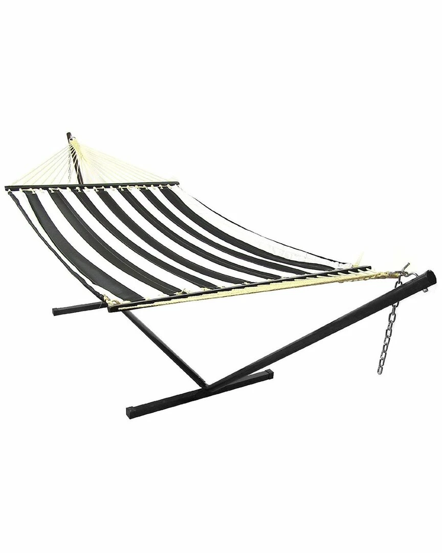 New ๐ Sunnydaze 2-Person Quilted Spreader Bar Hammock & 12′ Stand Home Hammocks & Swing Chairs ๐