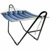 - Bring comfort and style to any outdoor space with this portable hammock and stand! Enjoy the modern black and white stripe that this quilted hammock has to offer. Plus, this hammock is made from a durable polyester material that is dye treated to make it UV-resistant. This hammock and stand set includes a 12′ heavy-duty steel stand; simply assemble the stand and relax! Spacious enough to make it a 2-person hammock it is cozy for 1 or 2 and will add a relaxation piece to any backyard or patio. The hammock features a quilted black and white stripe design, spreader bars and the stand making it free standing and portable, the perfect piece for pool, patio, yard or any other outdoor space.