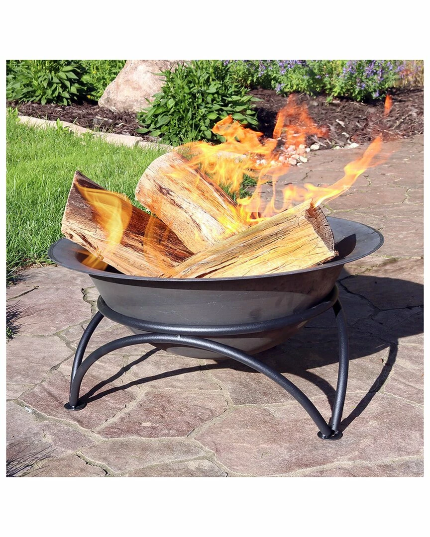 - This sleek cast iron fire pit bowl and stand set will add instant warmth and contemporary elegance to any outdoor space, including the backyard, campsite, or cabin. The fire pit bowl comes complete with a stand so it is raised above the ground. The 24-inch size ensures the fire will be warm enough for family and friends to gather around. No assembly required. Simply place the bowl on the stand when ready to use the fire pit.