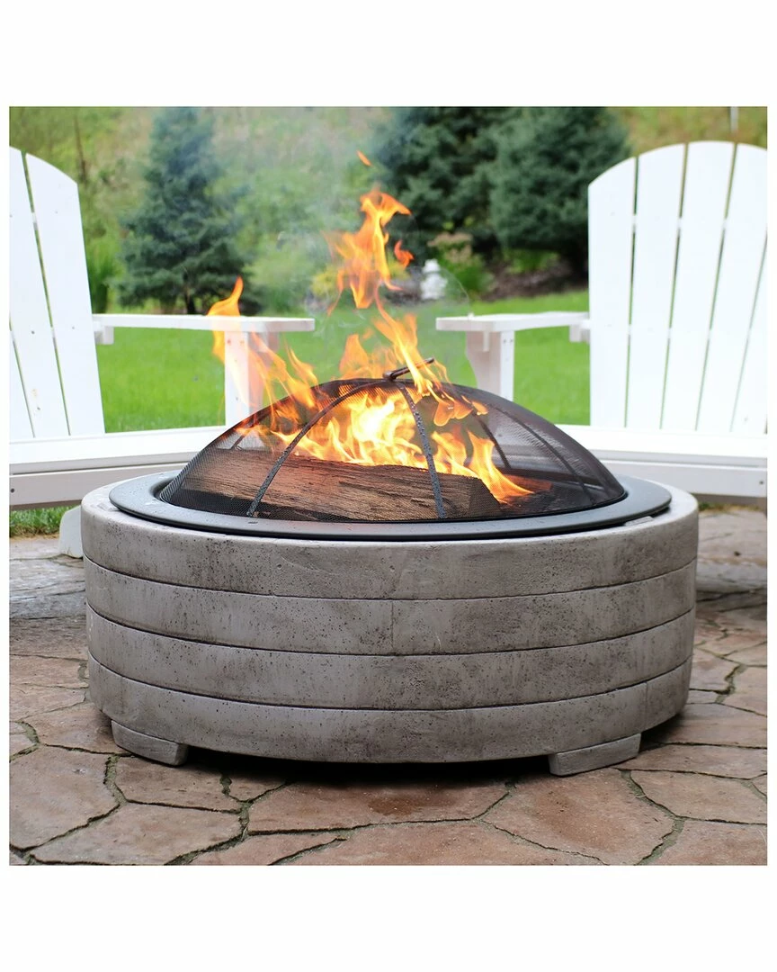 Buy โ Sunnydaze 35in Wood-Burning Fire Pit Faux Stone Design With Steel Spark Screen Home Fire Pits ๐งจ