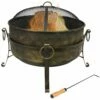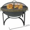 - PERFECT FOR BBQ COOKING: Fire pit grill works great for barbecue cookouts out on the lawn; Fireplace has a hinged door on the mesh screen to easily access burning logs, the grilling grate, or to add firewood; Tubular metal rail encircles the brazier, maki