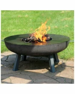- This outdoor wood-burning fire pit with cooking surface will add contemporary flare to any outdoor space. The simple design will blend in easily with many different styles. Each fire pit comes with everything necessary, including the bowl, handles, cooking ledge and leg assembly. To cook on the ledge simply add oil and place some crowd-favorite vegetables or meats directly on the surface.