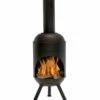 - Add instant cultural charm and warmth to any patio, yard or outdoor gathering space with this wood-burning chiminea. A chiminea’s design draws fresh air into the fire by moving the smoke and soot of a fire away from those present. Therefore, the fire burns hotter and cleaner. The smaller 23.5″ diameter and partially-enclosed design makes this chiminea safe for use in smaller outdoor spaces. However, it is recommended to take the same safety precautions that are taken while using a fire pit.