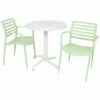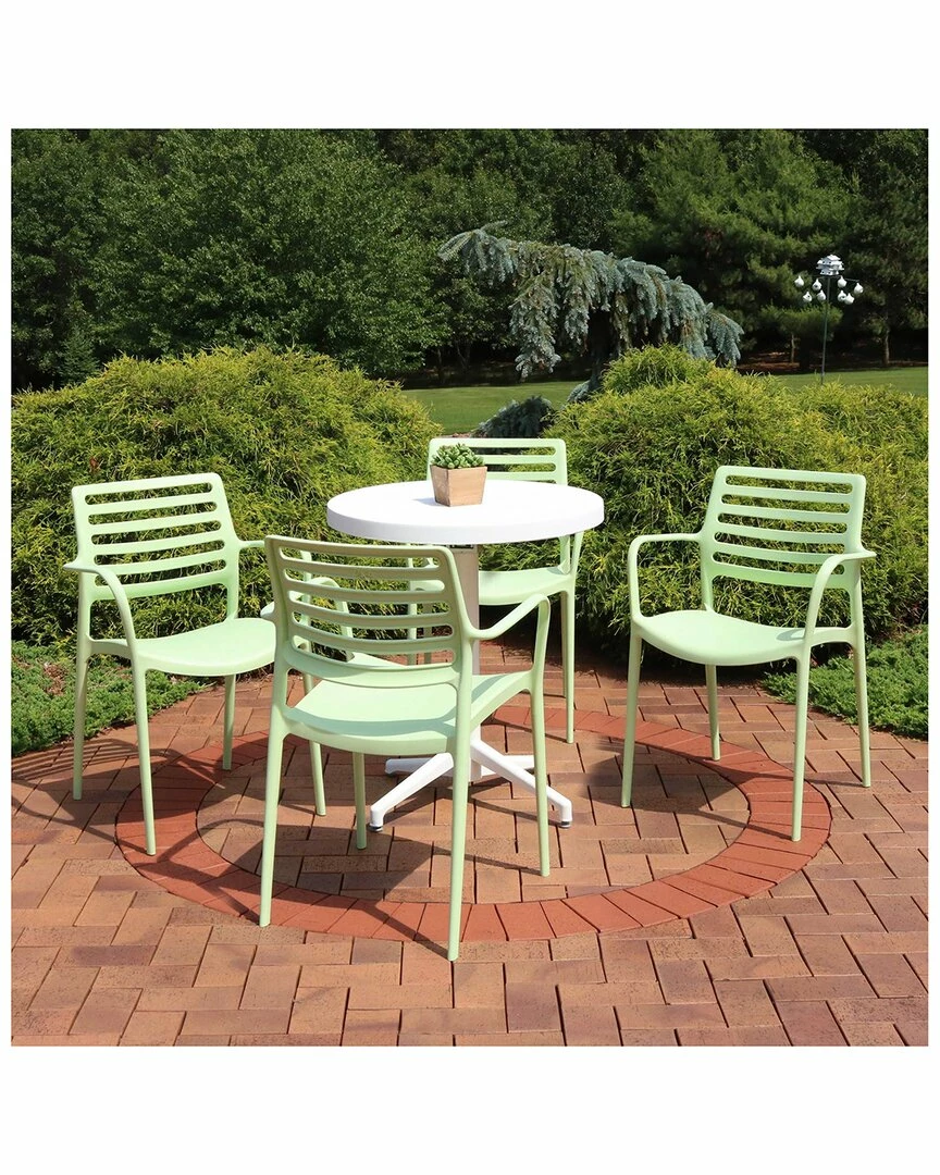- Use this 5-piece all-weather dining set on the patio, terrace, deck or inside the home. The Astana armchairs feature a durable fiberglass-reinforced polypropylene construction and are designed for ergonomic comfort with backs and armrests. The included table features a durable resin top and frame with aluminum feet.