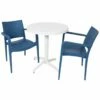- This 5-piece all-weather dining set will add pops of color to the patio, deck or terrace with its vibrant chairs combined with the white table! The armchairs feature an ergonomically comfortable design combined with easy-to-maintain fiberglass-reinforced polypropylene composition. The white round table features a fold-down top and resin composition with aluminum feet.