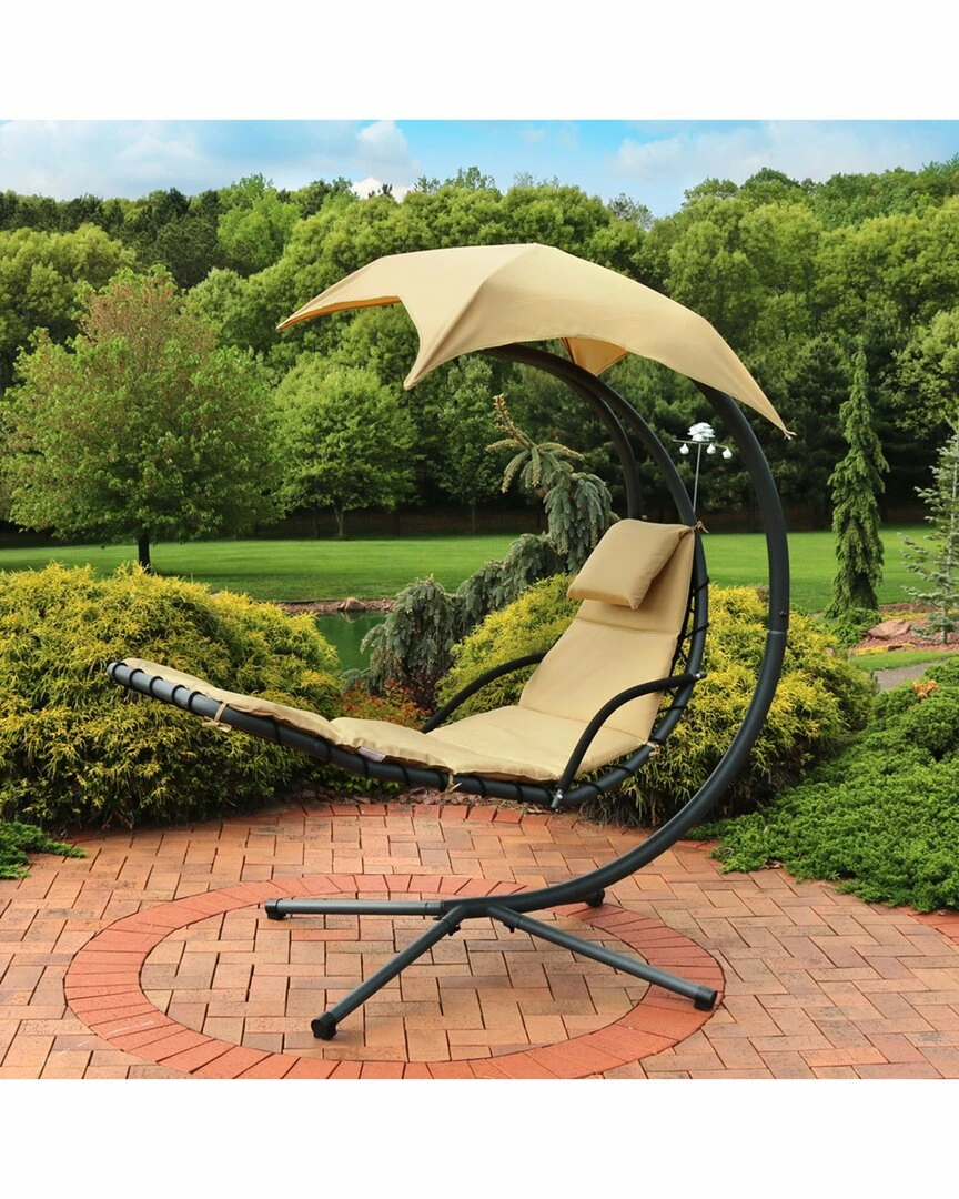 Best Sale ๐ Sunnydaze Beige Hanging Floating Chaise Lounger Swing Chair With Umbrella Home Hammocks & Swing Chairs ๐งจ