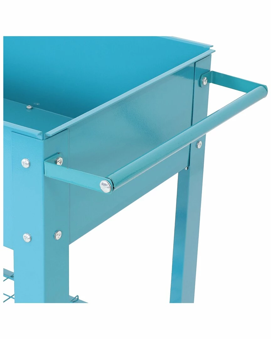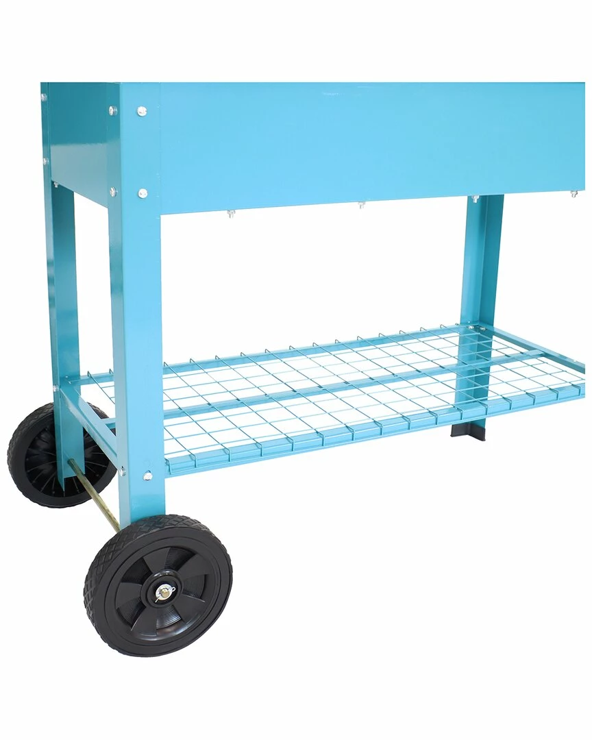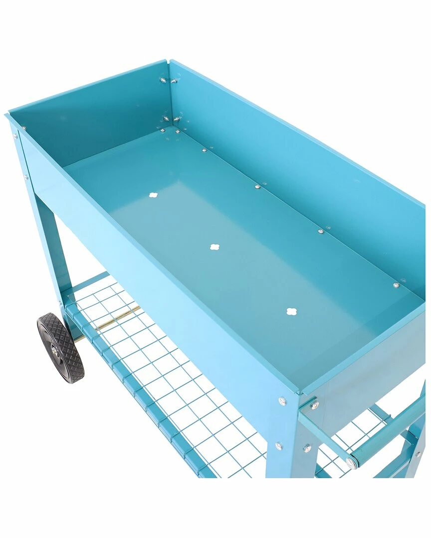 - DURABLE STEEL CONSTRUCTION: Elevated garden cart is made from durable 1.5 millimeter-thick steel with a blue hot-dip galvanized finish; Adds a fun pop of color to any garden, patio, or deck; Planter area has 1-inch diameter drainage holes and a 110-pound