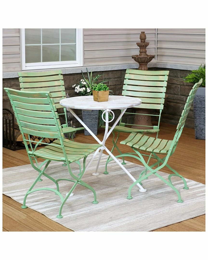 Cheapest ๐ Sunnydaze Cafe Couleur 5pc Shabby Chic Wood Folding Table And Chair Set Home Outdoor Tables ๐