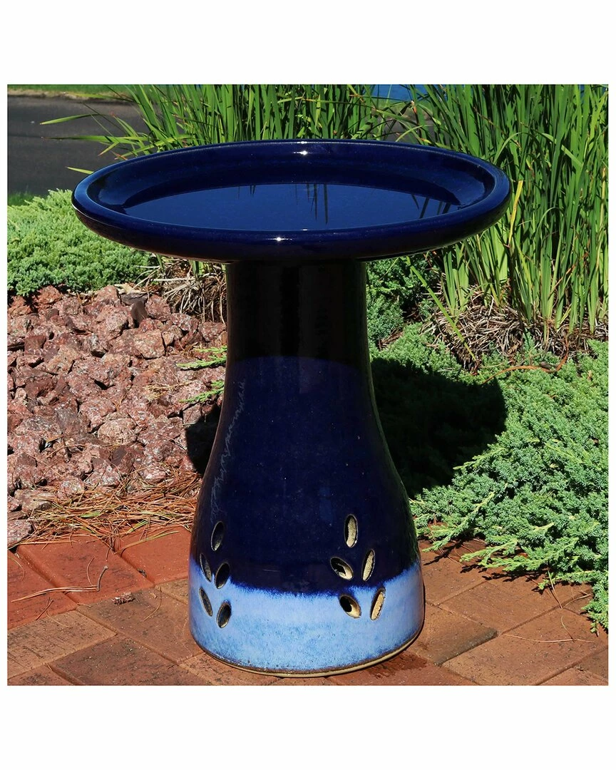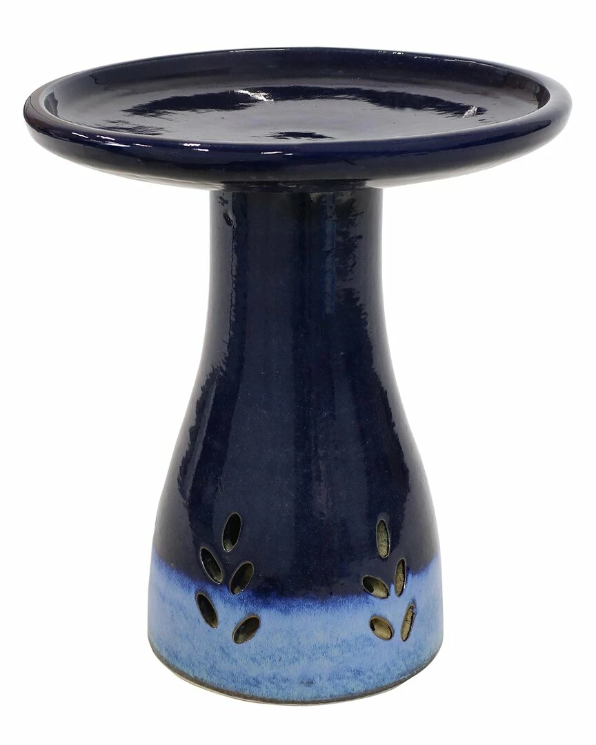- Welcome birds to the yard or garden with this eye-catching hand-painted glazed ceramic bird bath. Both functional and beautiful, the bird bath’s classic design makes a wonderful addition to any outdoor space and the glazed finish is easier to keep clean.