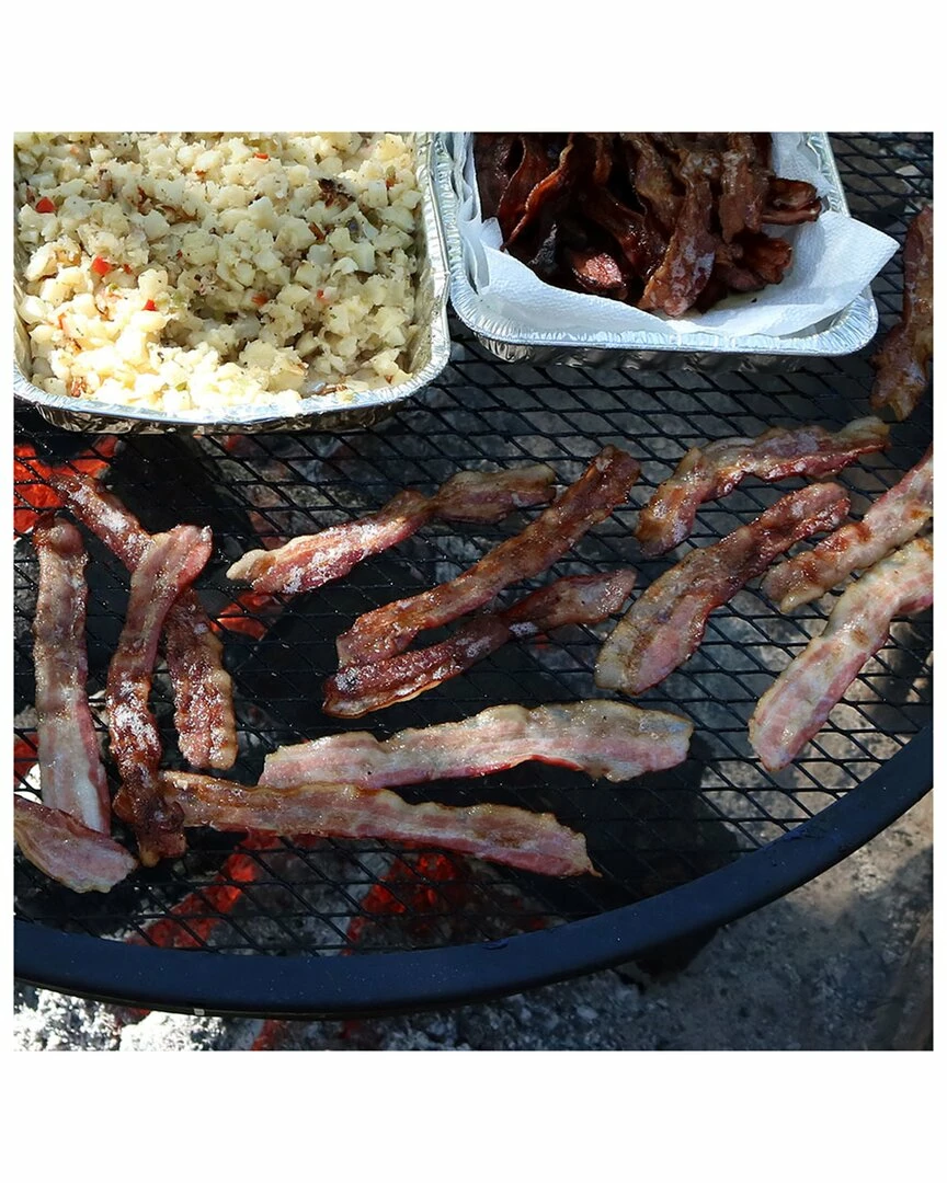 - This heavy-duty round mesh steel fire pit cooking grate and is perfect for camping and more. Designed with a durable metal construction, this cooking grate is perfect for cooking over the open fire. Creates perfect grill marks on food without any hassle. Offered in multiple sizes, making it easy to find the perfect size for any outdoor fire pit or grill. Enjoy an evening of grilling with this cooking grate!