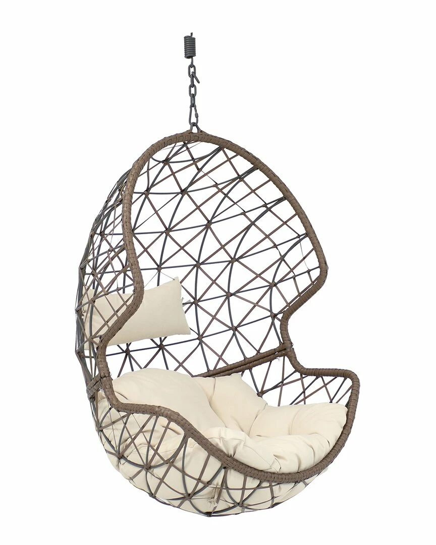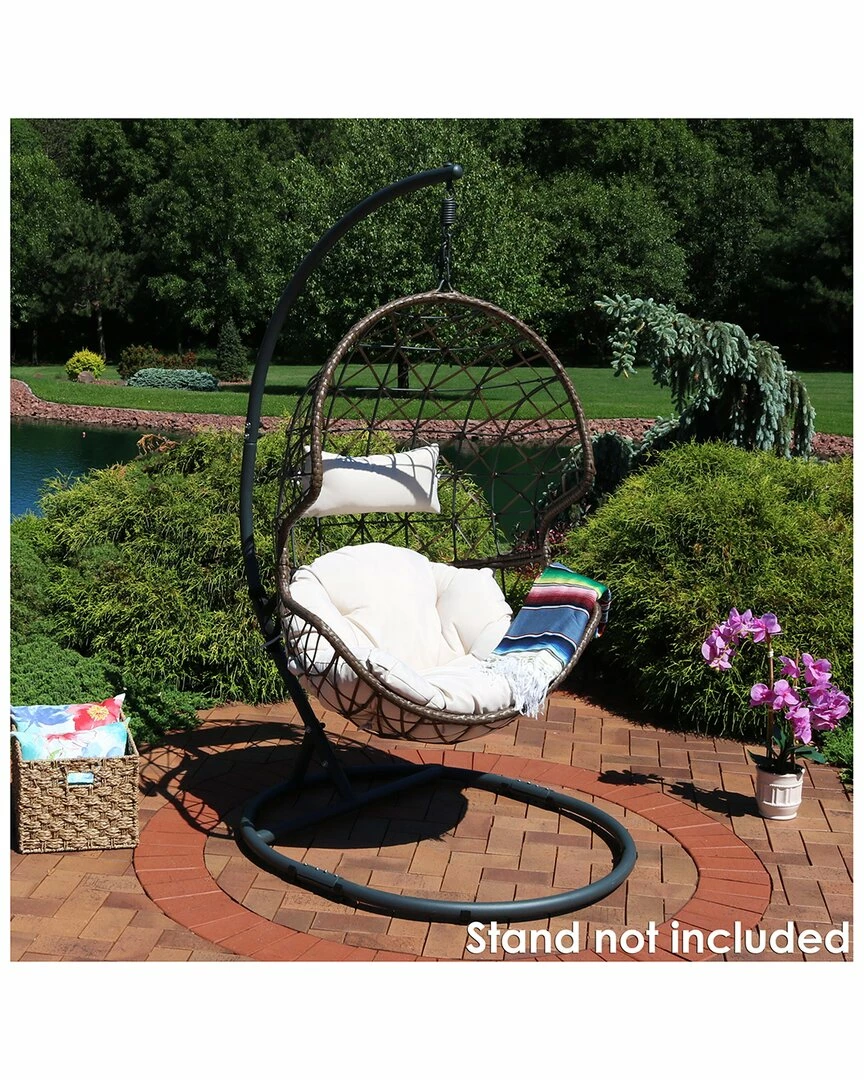- Create a personal lounge area for yourself with this hanging egg chair. Stylish and durable, this unique piece of furniture is designed to withstand the elements with a steel frame wrapped in polyethylene rattan resin wicker. This material is smooth to the touch and will not splinter like natural rattan. Plus, it is weather-resistant, strong and resilient, maintaining a beautiful color for longer. The included cushion and headrest allow you to comfortably sink into this chair for greater enjoyment. Please note, a stand is not included with purchase.