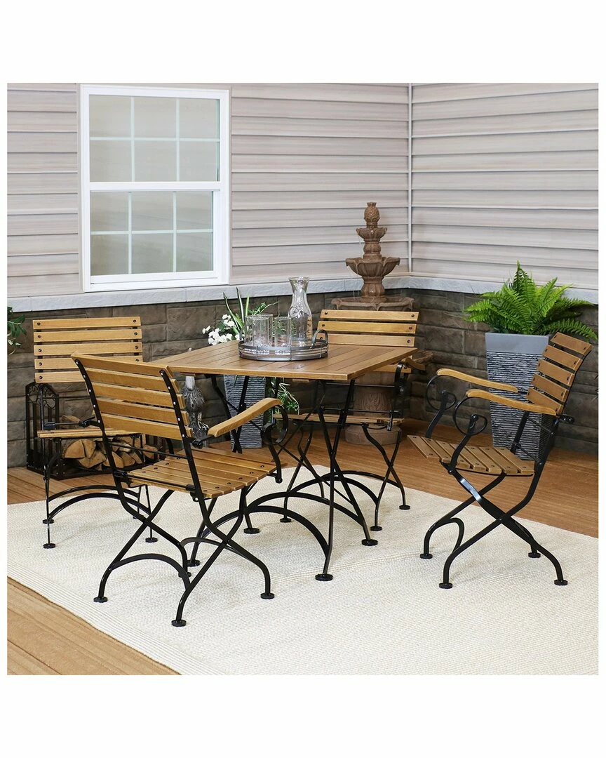 Promo ๐ Sunnydaze Deluxe European Chestnut 5pc Folding Bistro Dining Table And Chair Set Home Outdoor Tables ๐