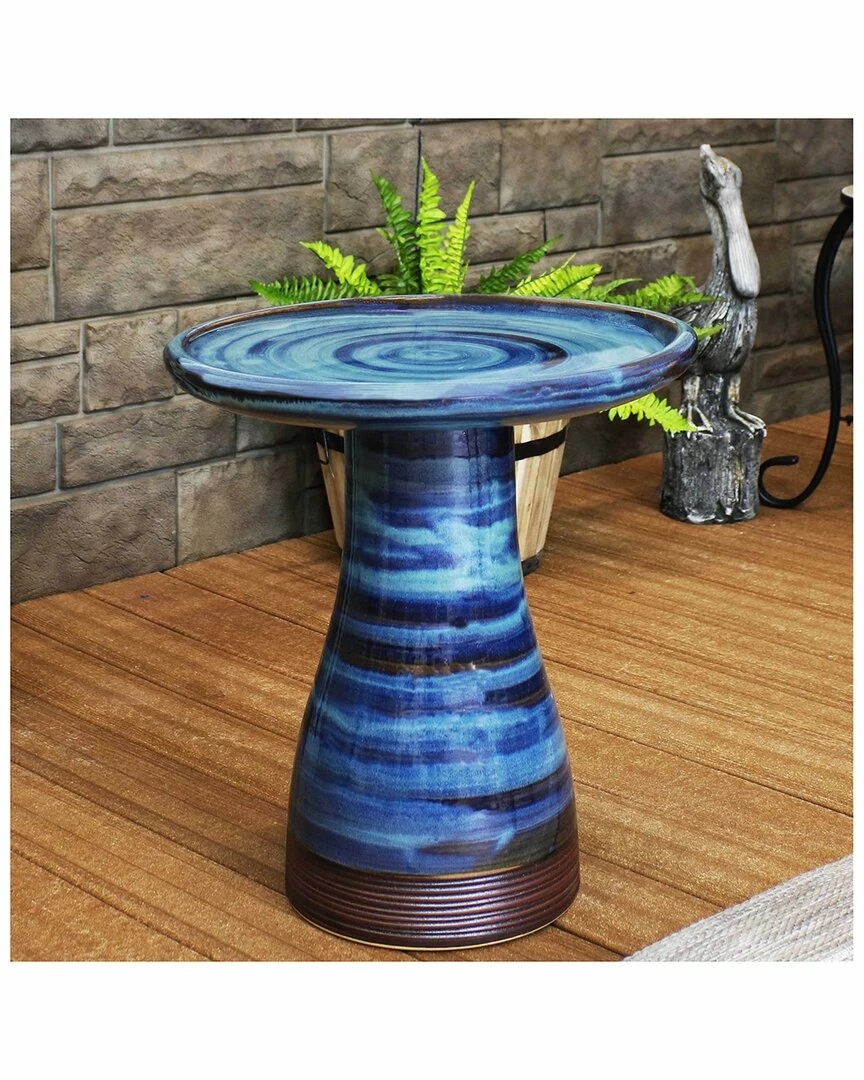 - Beckon feathered friends into the yard to play or rest in this duo tone ceramic bird bath. The outdoor bird bath features a hand-painted, glazed finish to not only enhance the functionality but to also make it easier to clean. The lovely 2-tone style is sure to add an extra accent to any yard, garden, landscape or patio.