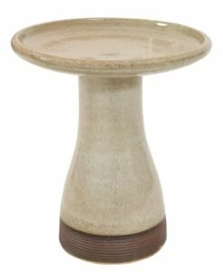 - Beckon feathered friends into the yard to play or rest in this duo tone ceramic bird bath. The outdoor bird bath features a hand-painted, glazed finish to not only enhance the functionality but to also make it easier to clean. The lovely 2-tone style is sure to add an extra accent to any yard, garden, landscape or patio.