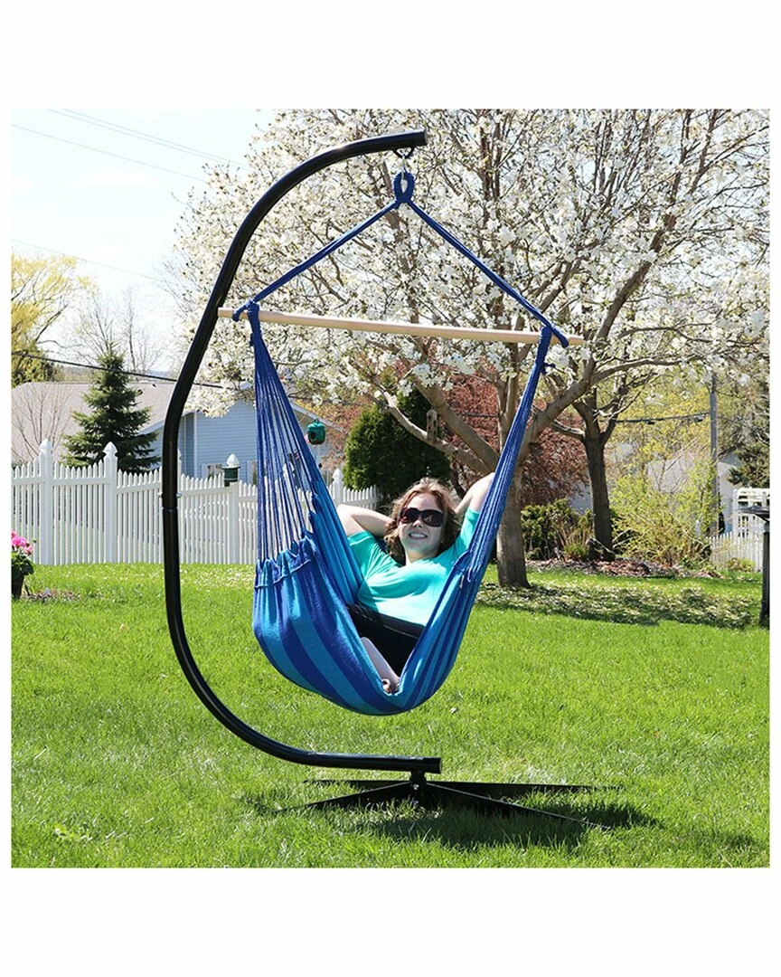 New ๐ Sunnydaze Extra Large Hanging Hammock Chair Swing With C-Stand Home Seating ๐