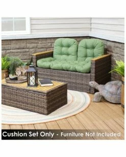 Wholesale โ๏ธ Sunnydaze Green Tufted Olefin 3Pc Indoor/Outdoor Settee Cushion Set Home Seating ๐