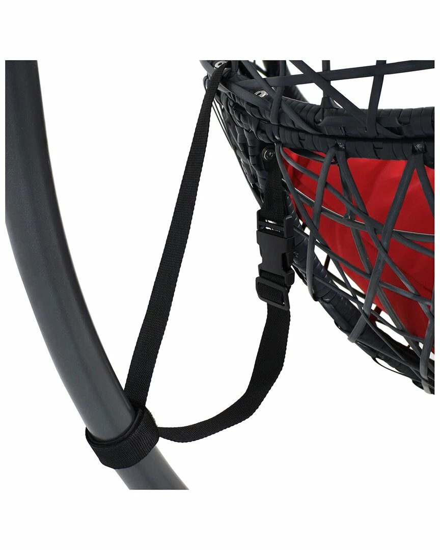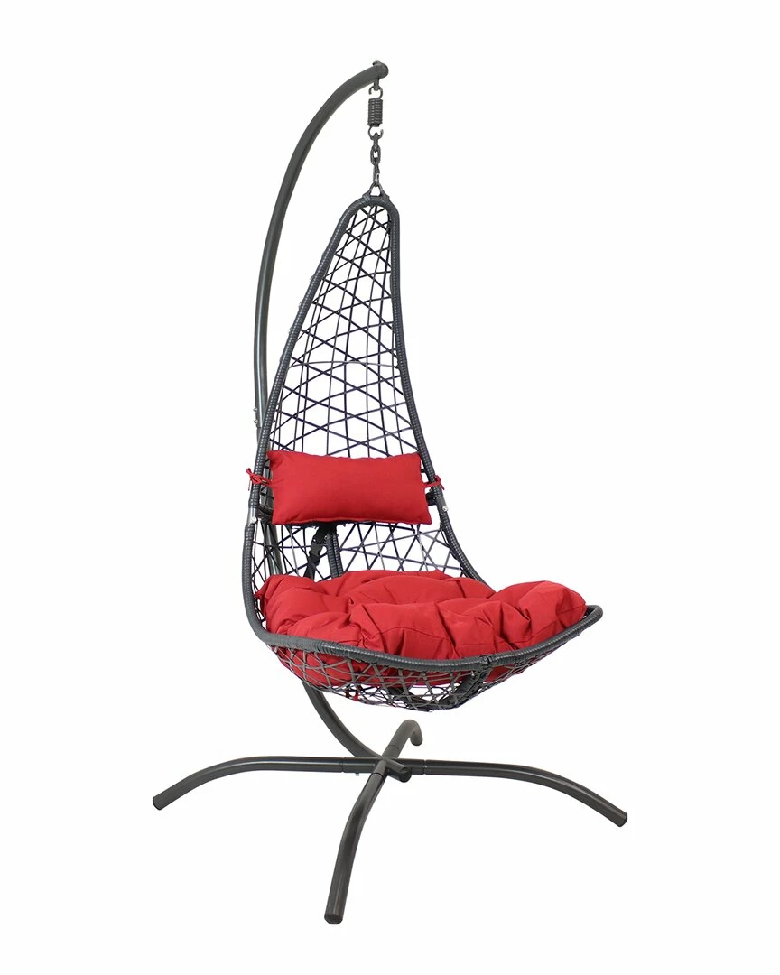 - CAN BE USED ANYWHERE: No trees or beams necessary to install. This product includes 1 hanging chair, 1 chair stand, 1 seat cushion, 1 headrest cushion, 1 carabiner and 1 safety strap. The included stand ensures that this outdoor seat can be used in the pe