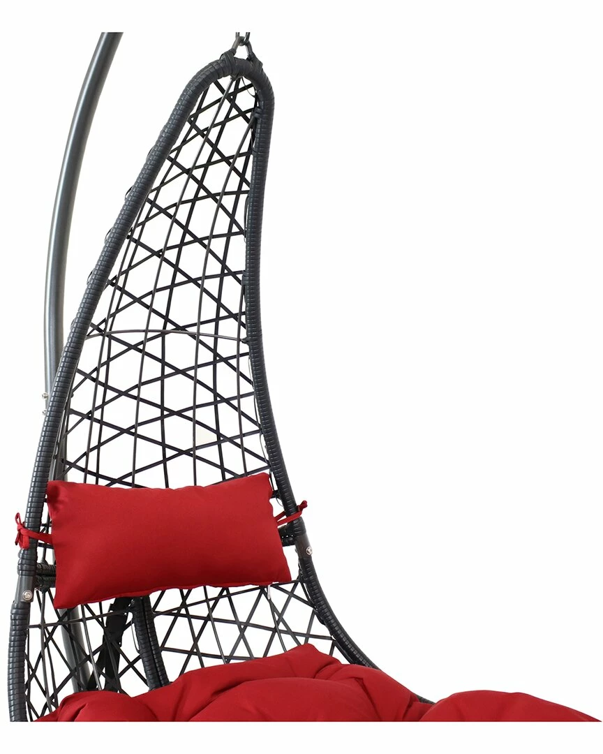 - Have a stylish place to sit back and relax outdoor with the Phoebe hanging chair and stand. This outdoor lounge chair is constructed with a steel frame wrapped in resin rattan that replicates the look of traditional wicker, but will stay smooth to the touch and won’t splinter or fray. Unwind in confidence knowing that the chair is hanging from a strong and resilient steel stand. This product includes 1 hanging chair, 1 headrest cushion, 1 seat cushion, 1 stand and 1 hanging chain. Enjoy the comfort and style of this versatile chair and stand on the patio, porch, deck, balcony and any other outdoor living space extra seating is needed.