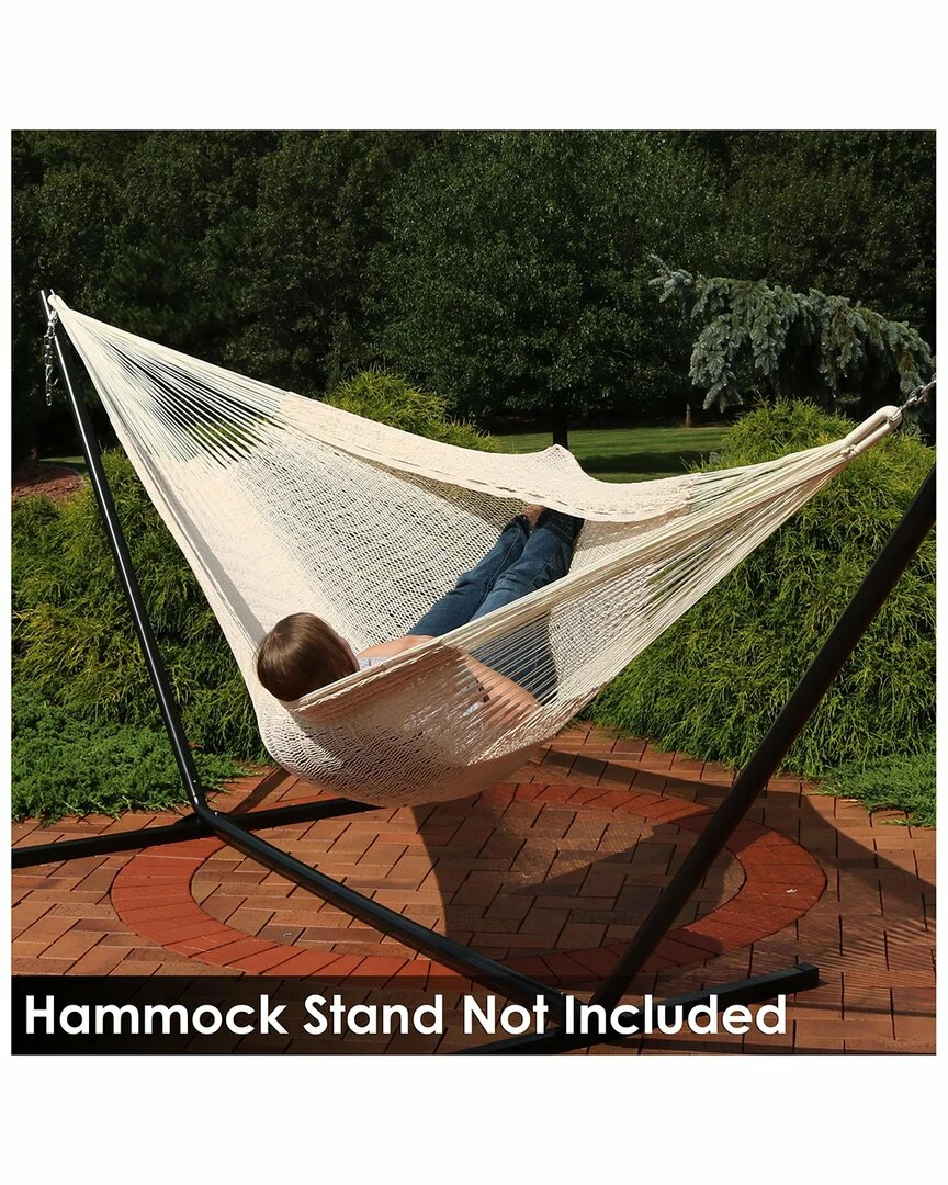 - This large Mexican hammock is a very popular size for one, two, or even a family of people. The heavy-duty hammock is hand woven from a thick cotton cord making it four times thicker than the traditional Yucatan style. The feature is woven from cotton giving it a soft, relaxing texture, as well as a breathable quality. The jumbo size provides plenty of room for relaxing and creating memories at home, in the backyard, on the patio, at the lake, or even relaxing with a book at the beach. It can easily be attached to trees, otherwise, it works great with the Sunnydaze 15′ hammock stand (sold separately).