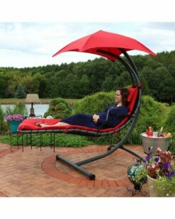 - This hanging chaise lounge chair is flexible, comfortable seat ing wherever it is placed. With its beautiful vibrant coloring, this hanging chair will accent any patio decor so drift away in this dreaming chair and enjoy.