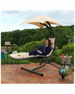Best Sale ๐ Sunnydaze Hanging Floating Patio Chaise Lounger Chair With Canopy Home Hammocks & Swing Chairs ๐