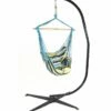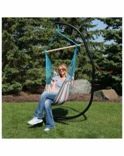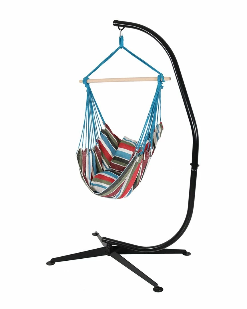 - Sink into relaxation with this hammock chair and C-Stand. The vibrant cushions add comfort and style while the chair itself adds a bit of whimsy. The included C-Stand features a durable construction. The heavy-duty stand will be what is needed to relax and enjoy the set to the fullest.