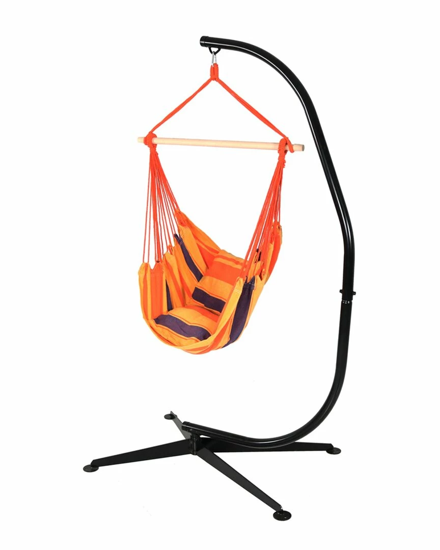 - Sink into relaxation with this hammock chair and C-Stand. The vibrant orange, purple and yellow striped cushions add comfort and style while the chair itself adds a bit of whimsy. The included C-Stand features a durable construction. The heavy-duty stand will be whats needed to enjoy the set to the fullest.