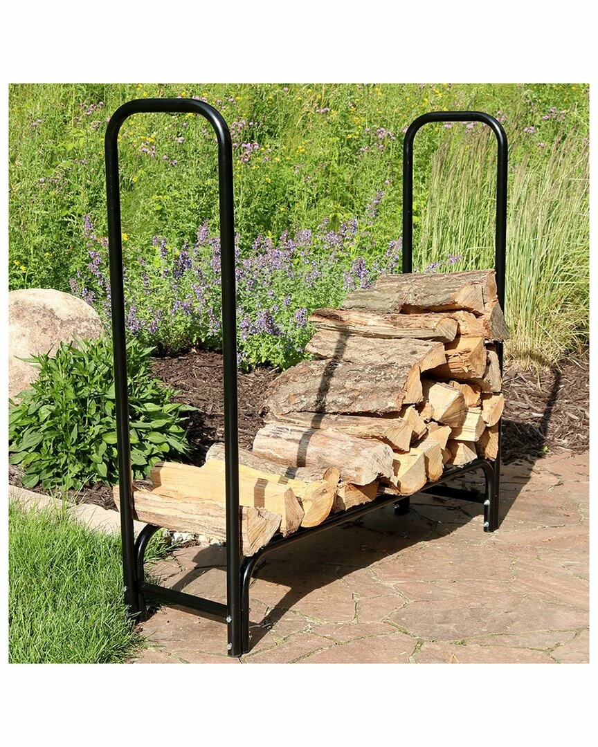 - This outdoor, heavy-duty log rack will help keep firewood handy whenever needed. This firewood holder features a durable tubular steel construction and black powder-coated finish. It also stores up to 1/2 face-cord of wood to keep all firewood organized and off the ground.