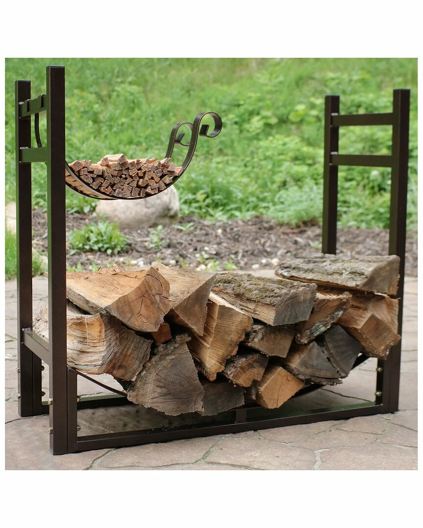 - The perfect firewood log rack for the patio, garden, yard or indoors near the fireplace. This sleek rack will add a uniquely elegant yet functional touch to indoor or outdoor spaces. Featuring a contemporary design as well as a special place for kindling, this log rack has it all. Firewood will stay off the ground and easy to access.