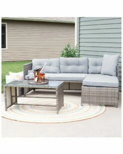 - COZY CHAT SET: Includes 1 patio sectional sofa, 1 coffee table, 1 throw pillow, 2 seat cushions and 3 back cushions; Create a comfortable and inviting outdoor seating area; Cushions stay securely in place on sectional with elastic and toggle fasteners, wi