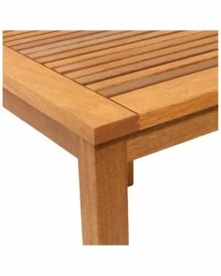 - Have stylish and functional outdoor furniture on the patio or deck with this set of 2 nesting side tables. Constructed of beautiful meranti wood, this set of furniture will add classic style to your outdoor living space. They are perfect for setting down your beverage while relaxing outside by the pool, or for displaying exterior decorative accents. Use these as console tables outdoors or as end tables when set next to an exterior sofa or lounge seating. This versatile set of furniture can be paired together, and the smaller table can be conveniently tucked underneath the larger table when not in use.