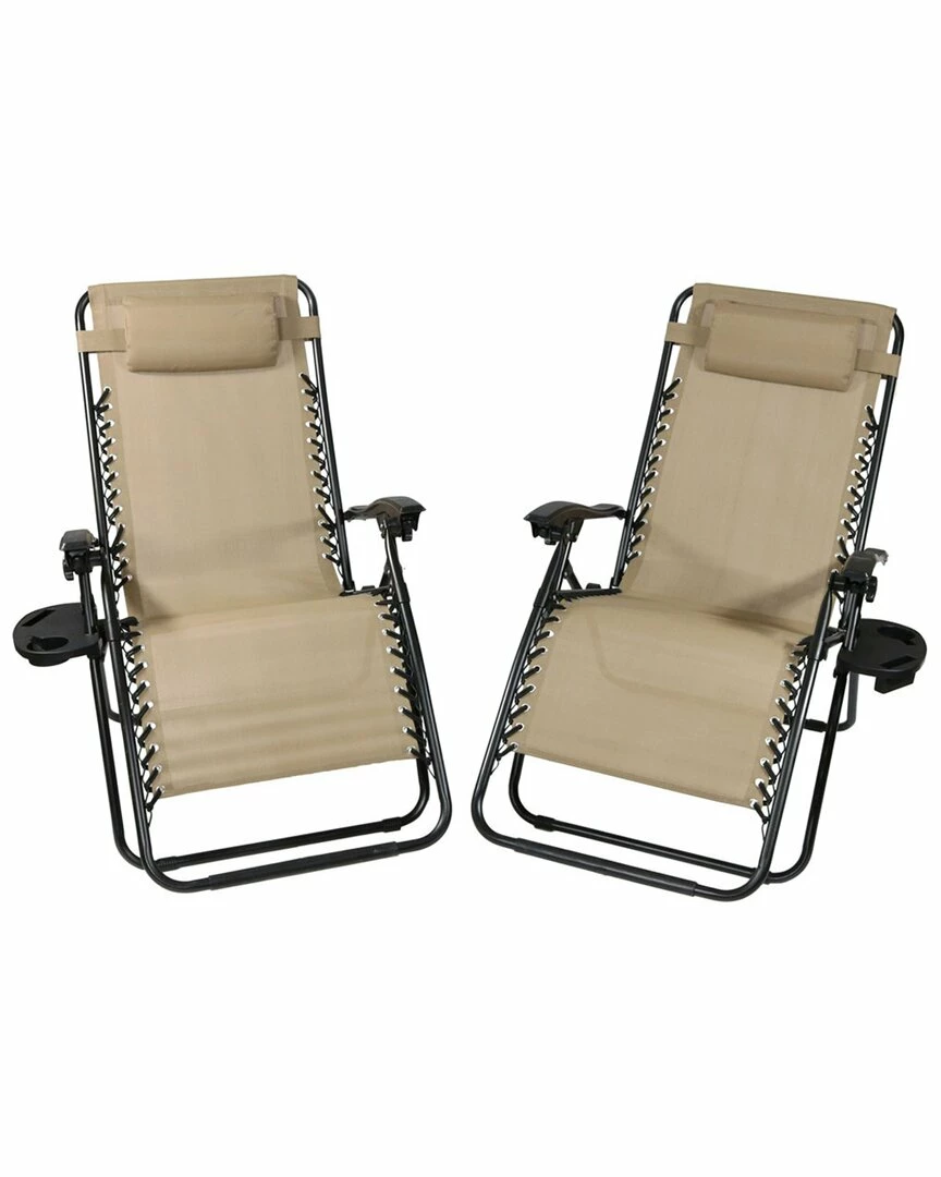 Outlet ❤️ Sunnydaze Oversized Zero Gravity Lounge Chairs And Cup Holders Set Home Seating ⭐