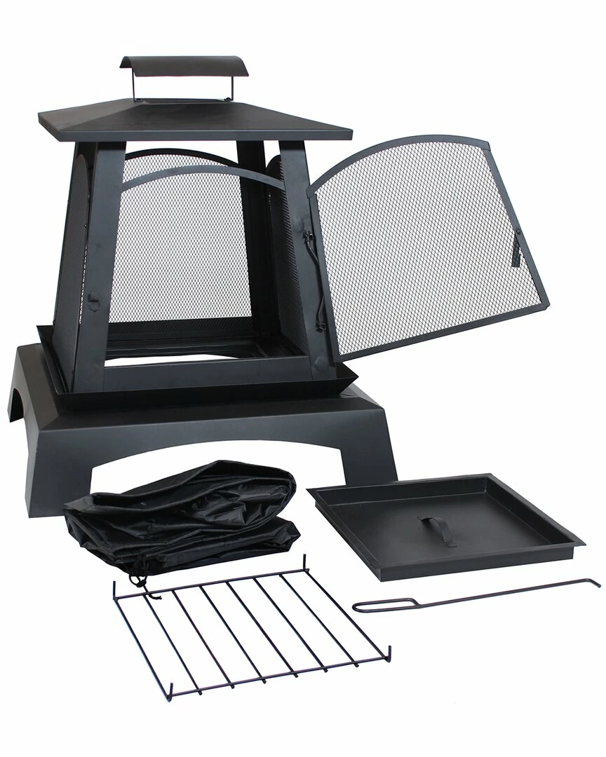 Outlet ๐ฅ Sunnydaze Pagoda Style Steel With Black Finish Outdoor Fireplace Home Outdoor Tables ๐