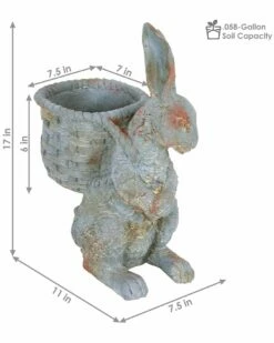 - Beautiful garden decor: This rabbit statue is the perfect accent piece for any outdoor or indoor space. It measures 11″ L x 7.5″ W x 17″ H and weighs 5.2 lbs. Flowerpot measures 7.5″ L x 7″ W x 6″ H with with a 0.5″ drainage hole. It has a soil capacity o