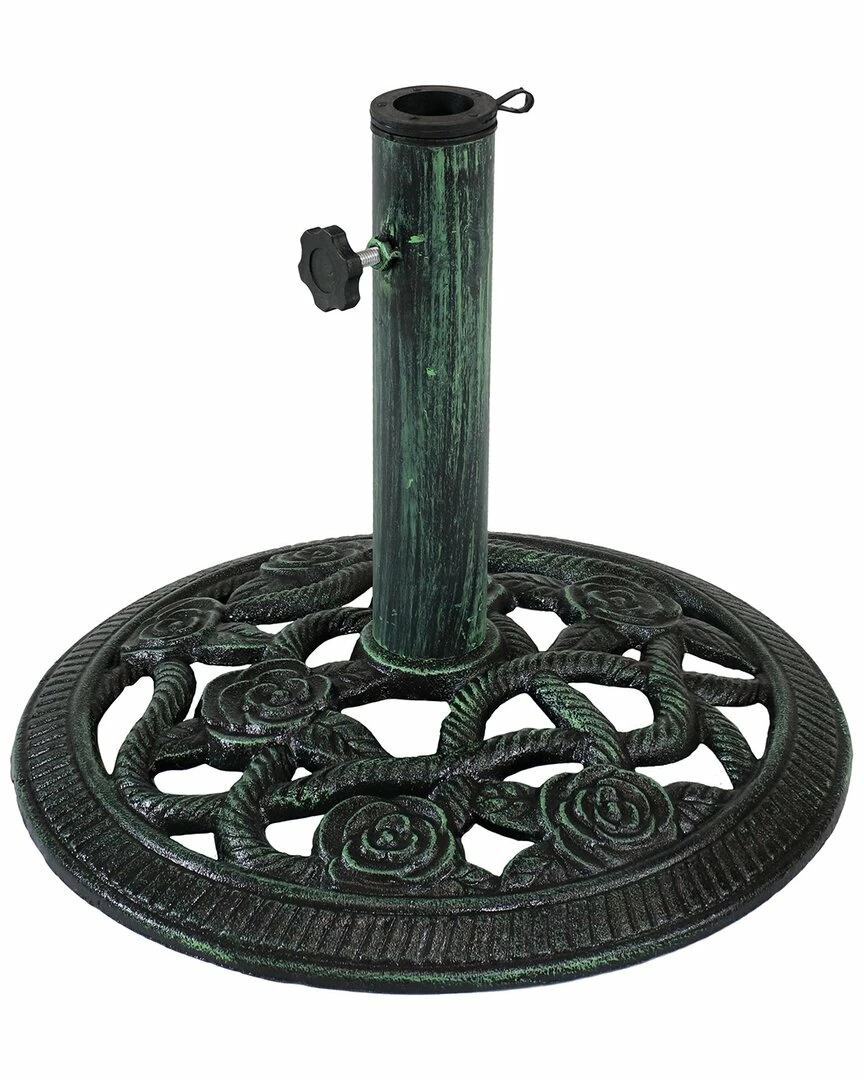 - BUILT TO BE TOUGH AND STYLISH: Patio umbrella stand is weather-resistant and is durable enough to withstand the elements outside; Features an ornate and attractive rose design that will add decorative touch to outdoor living spaces