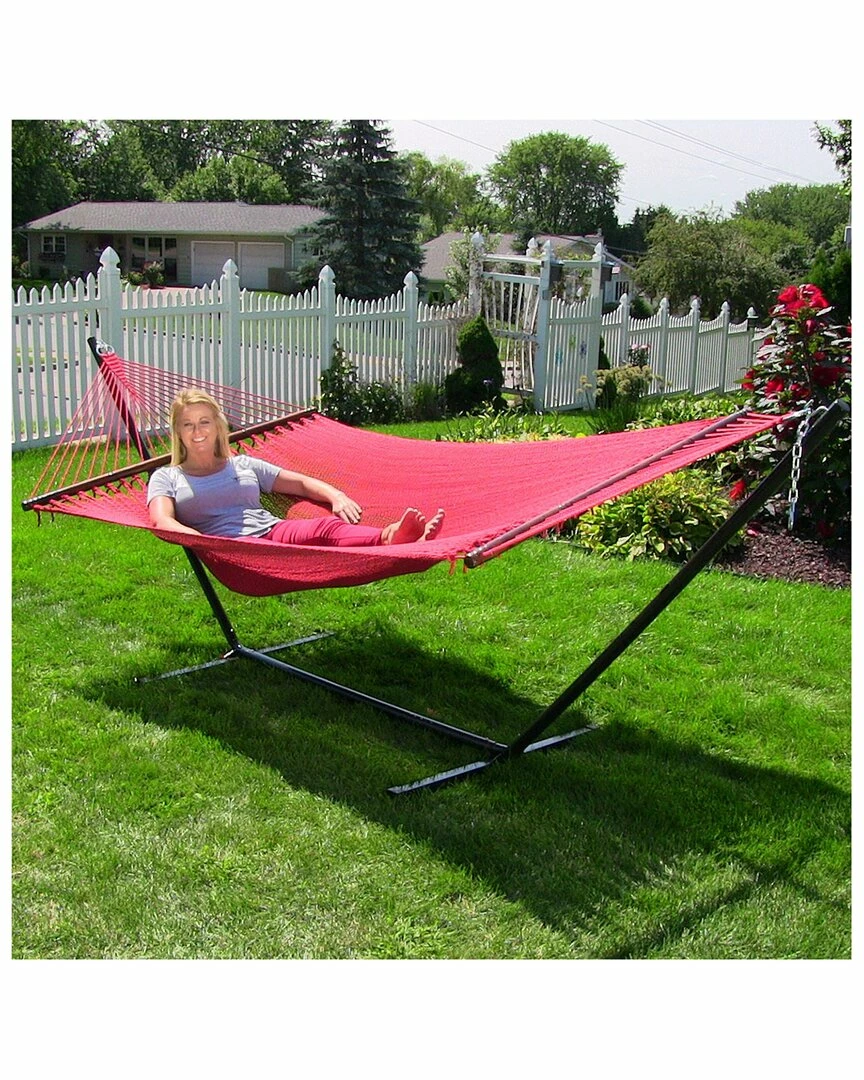 Best Sale ๐ Sunnydaze Soft-Spun 2-Person Caribbean Spreader Bar Hammock With 15′ Stand Home Seating โจ