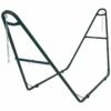 - Featuring a versatile A-frame design and ultra-durable powder-coated steel construction, this heavy-duty hammock stand is sure to be a favorite! This adjustable black stand is perfect for indoor or outdoor hammock needs! Whether it’s a Mayan, Brazilian, camping, or spreader bar hammock, this frame will do the trick. To fit, hammock can range from 9.5 to 14′ long. The metal stand features a sturdy 1.5″ powder-coated steel tube frame for resistance to rust, as well as adjustable chains and s-hooks, making this movable double stand perfect for any hammocks.