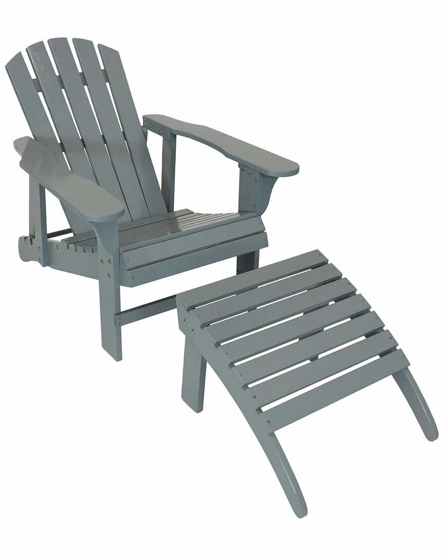 Hot Sale ๐ฏ Sunnydaze Wooden Outdoor Adirondack Chair W/ Adjustable Backrest & Ottoman- Gray Home Outdoor Tables โ